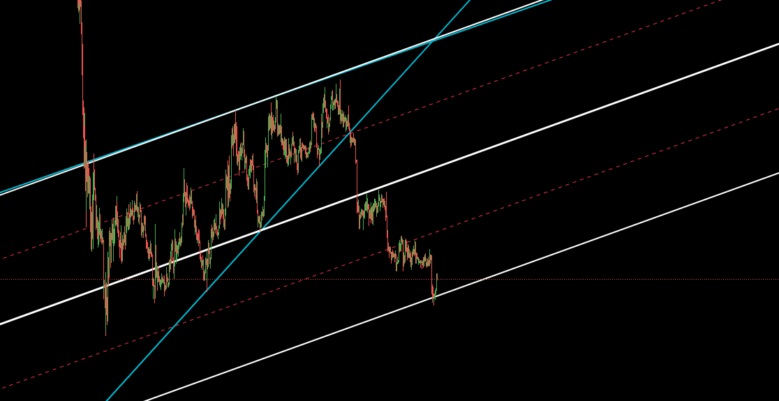 이렇게 웻지 패턴이 70% 정도 그려지면 채널을 그으 실수 있습니다. 추세 하나만으로는 지지와 저항이 부족해 채널을 추가합니다. 이 채널이 좋은 채널인지 검증할 때에는 채널에 0.5라인에서 지지와 저항이 나오는지 보시면 됩니다