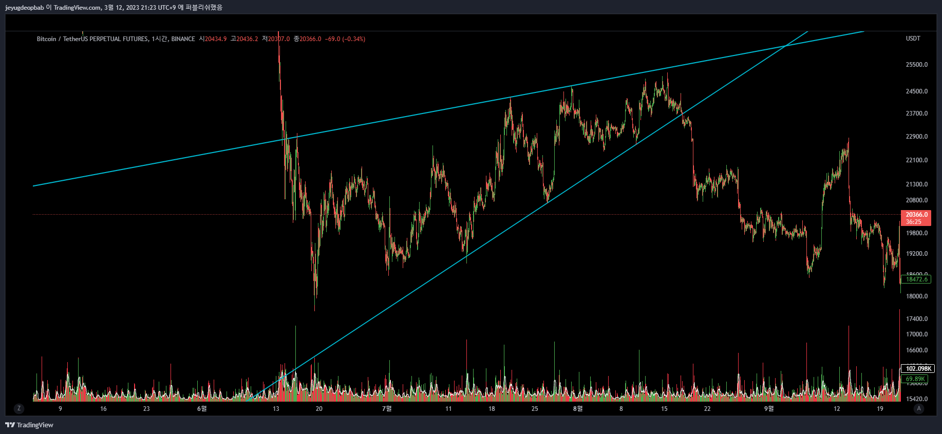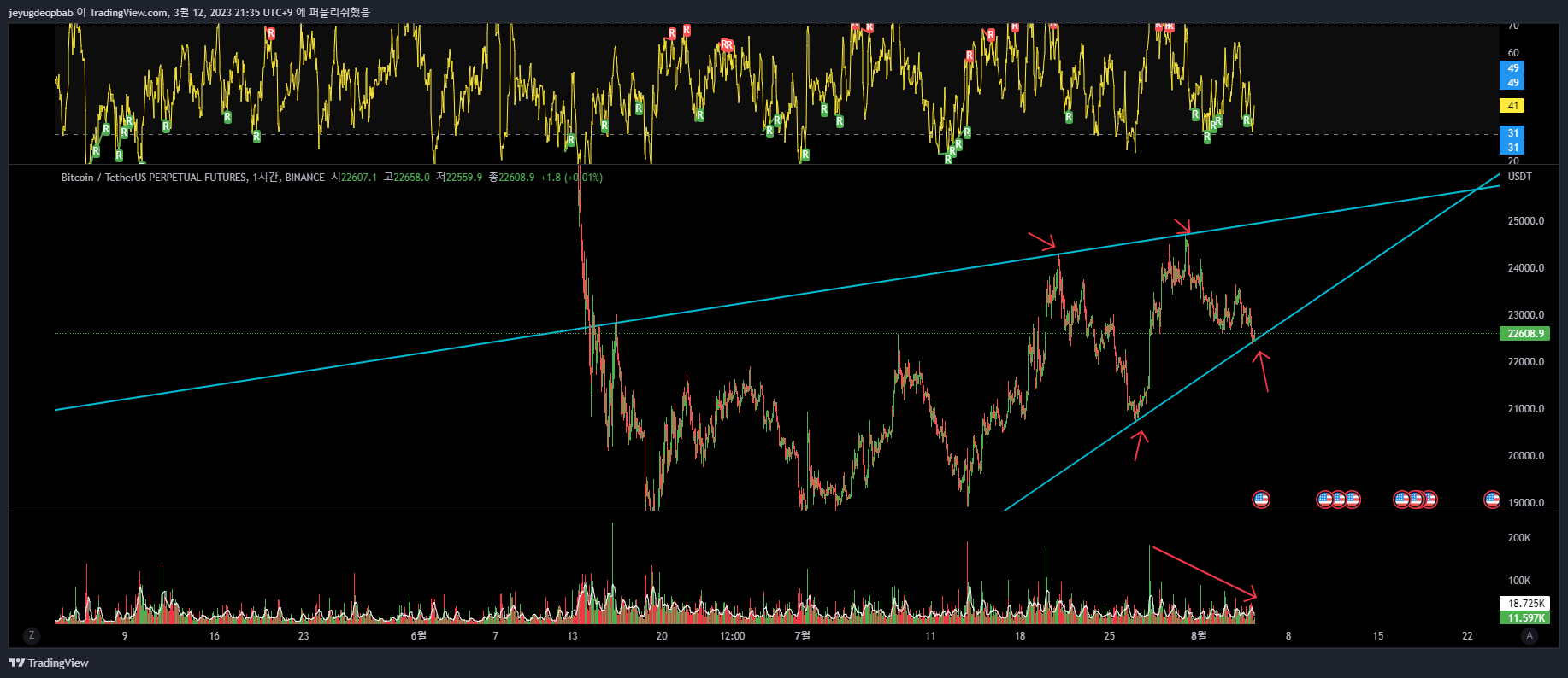 1. 라이징 웻지 비트코인 바이낸스 차트(2022-07-21 ~ 08-15)