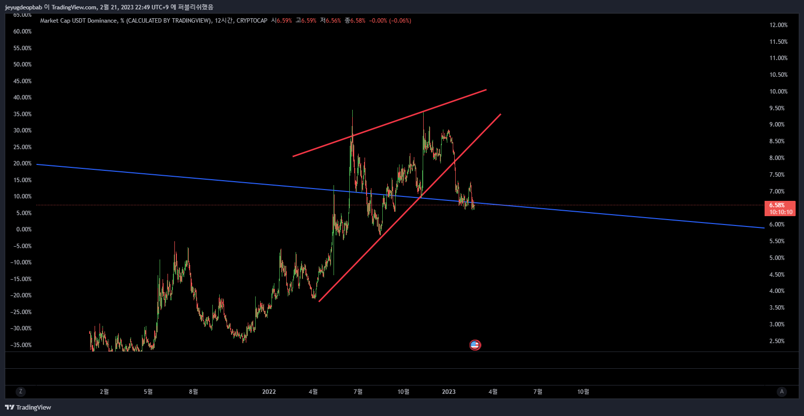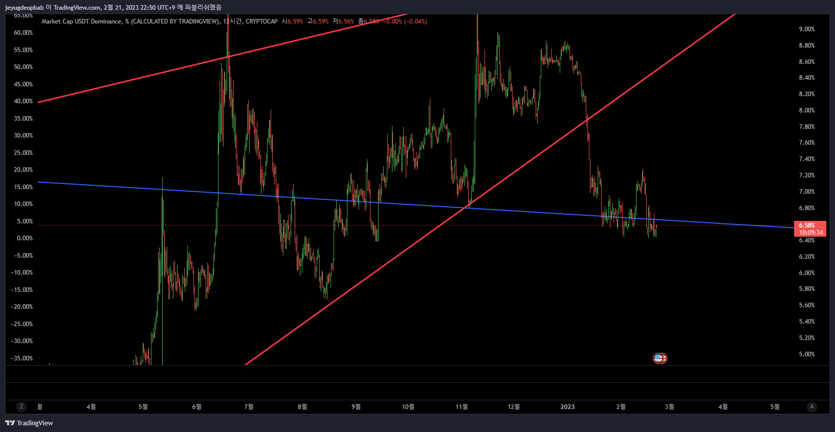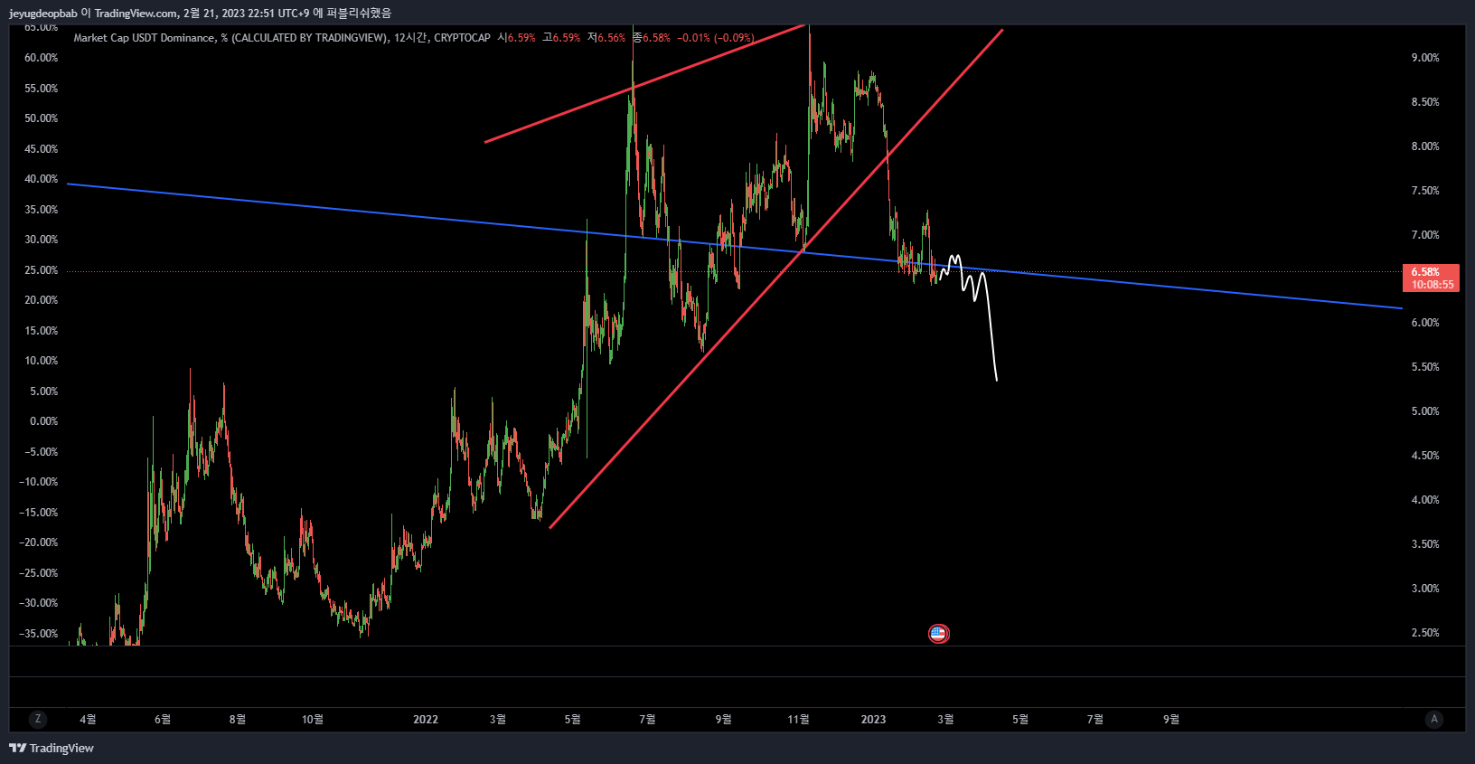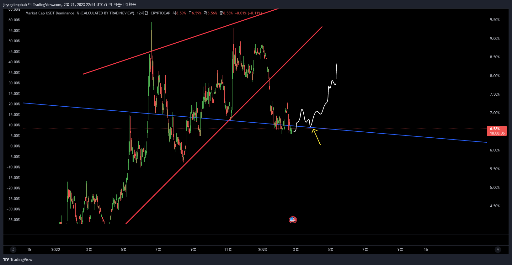 넥라인 추세에서 맞고 내리는 방향으로 제가 보여드린 것처럼 흘러가면 바로 하방 관점 폐기입니다