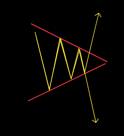 고점은 동일하고 저점이 높아지다 위로 올리는 패턴입니다.