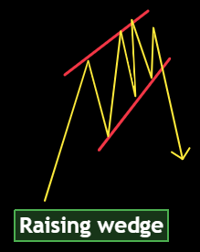 라이징 웻지는 고점과 저점이 높아지면서 나오는 패턴입니다.