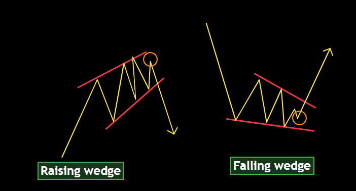 고점과 저점이 어떤 형태로 형성되는지에 따라 (라이징웻지, 폴링웻지)로 불려지는 패턴입니다